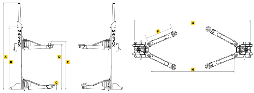 MaxJax's higher under-car clearance sets itself apart from other low-rise and mid-rise lift systems. This allows you to easily access engine undersides, transmissions, drive-shafts, starts, differentials or anything else requiring under-car access.